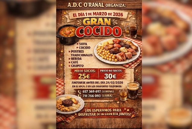 A Comisión de Festas de Vilarmaior convoca a veciñanza o sábado 7 de marzo de 2026 no pavillón polideportivo, con sesión vermú, tardeo e cañóns de calor