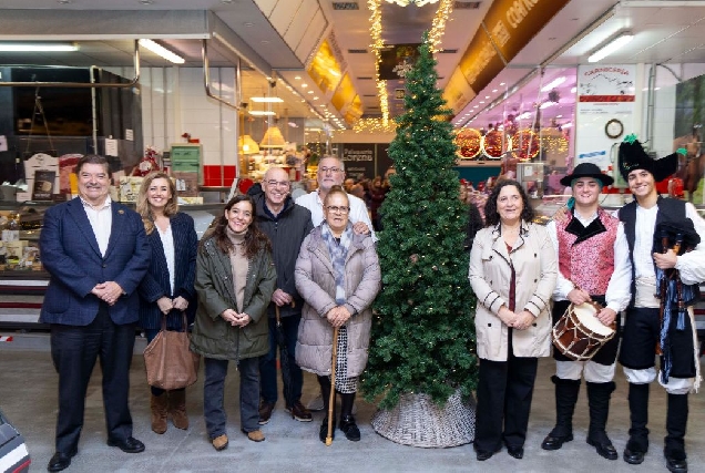 Bebeto inaugura o alumado e o Mercado de Nadal en María Pita, acompañado por Inés Rey e polos nenos e nenas do concurso de postais