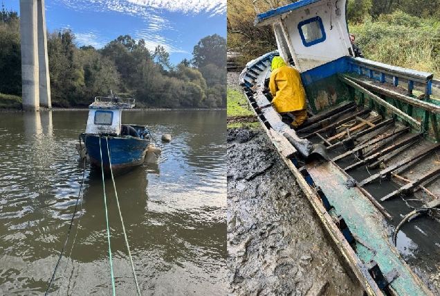 Betanzos e a Reserva da Biosfera retiran un barco abandonado na ría e estudan convertelo nun ‘barco fantasma’ para rapazada