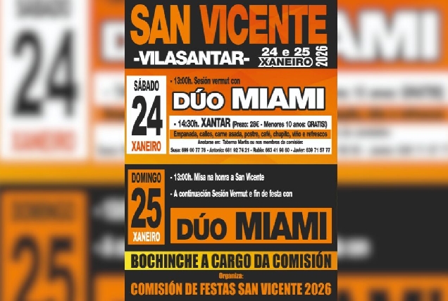 San Vicente celebrará as festas o 24 e 25 de xaneiro en Vilasantar con vermú musical e xantar popular