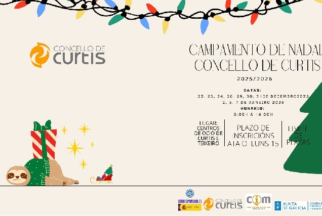 O Concello organiza actividades en Curtis e Teixeiro do 22 de decembro ao 5 de xaneiro e ofrece un campamento de Nadal con prazas limitadas para facilitar a conciliación familiar