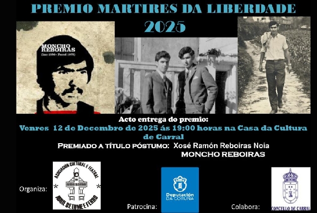La Asociación Cultural e Teatral Abril de Lume e Ferro otorgará Premio Mártires da Libertade 2025 a título póstumo a Moncho Reboiras