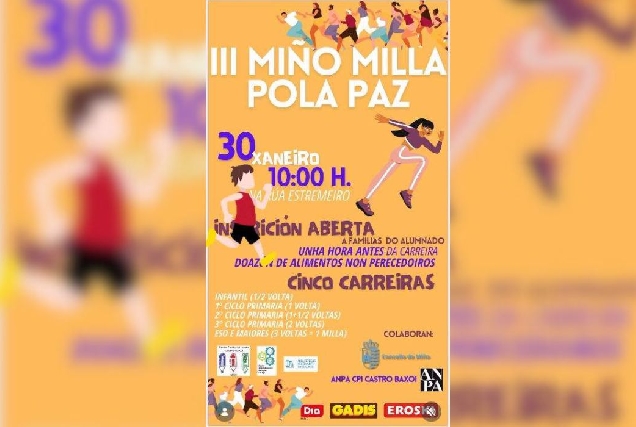 Aplazada por el mal tiempo la III Miño Milla pola Paz, que se traslada al 9 de febrero