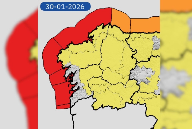 La Xunta extendió el aviso máximo a todo el litoral provincial ante la previsión de olas de hasta nueve metros, mientras el interior también acusa la inestabilidad con viento, granizo y lluvias