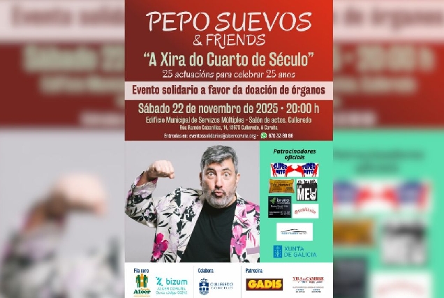 Culleredo acogerá el 22 de noviembre el espectáculo solidario 'Pepo Suevos & Friends' para impulsar la donación de órganos