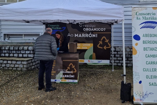 El Consorcio As Mariñas instala puntos informativos sobre reciclaje de aceite y biorresiduos en los ayuntamientos de la comarca