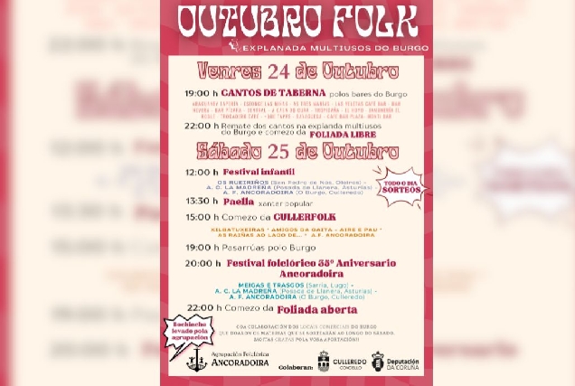 La explanada del Paseo Marítimo de O Burgo acogerá el 24 y 25 de octubre cantos de taberna, foliadas, pasacalles y festivales infantil y de aniversario, con apoyo del Concello y la Deputación