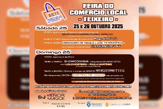 El sábado 25 y el domingo 26 de octubre en Teixeiro (Curtis) se celebrarán dos jornadas con foliada libre, pinchos y sorteos.