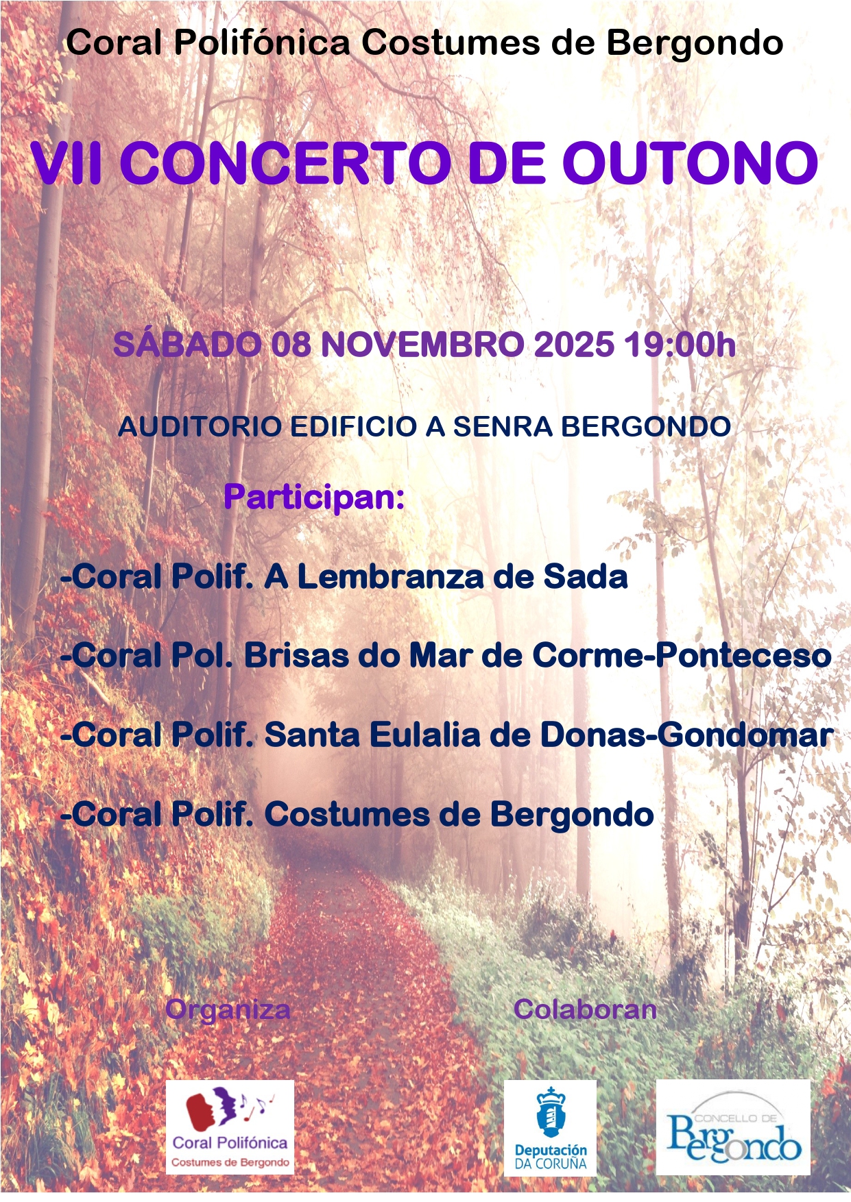 La organización corre a cargo de la Coral Polifónica Costumes de Bergondo con el apoyo del Concello, en el marco de la programación cultural municipal. La entrada es gratuita hasta completar aforo, como en el conjunto de actividades del Otoño Cultural de este año.