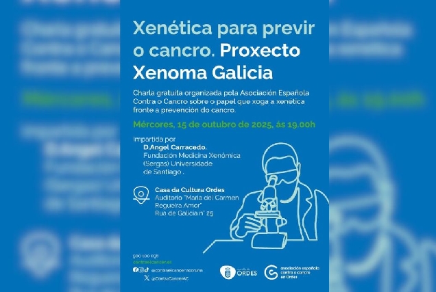 La conferencia, organizada por la Asociación Contra el Cáncer de Ordes con la colaboración del Concello, será el miércoles 15 de octubre a las 19.00 en el auditorio María del Carmen Regueira Amor con entrada gratuita