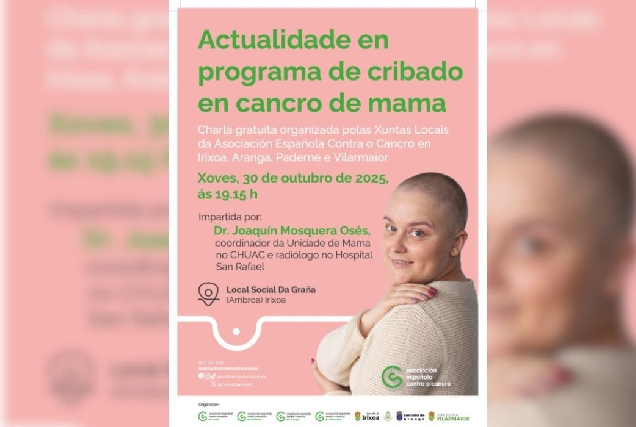 El radiólogo Joaquín Mosquera hablará el 30 de octubre a las 19.15 h en el Local Social da Graña, en el municipio de Irixoa, sobre la importancia de las revisiones y del cribado