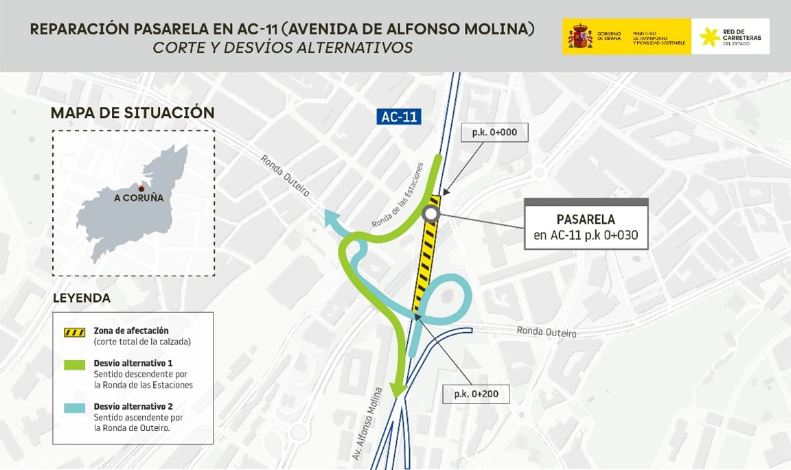 A operación obrigará a cortar ao tráfico a Avenida de Alfonso Molina nun tramo concreto (entre a zona de Caballeros e a gasolineira) durante a madrugada, no horario de menor intensidade circulatoria. O Concello calcula que as tarefas se prolongarán entre catro e cinco horas e que o tráfico quedará restablecido ao remate da intervención.