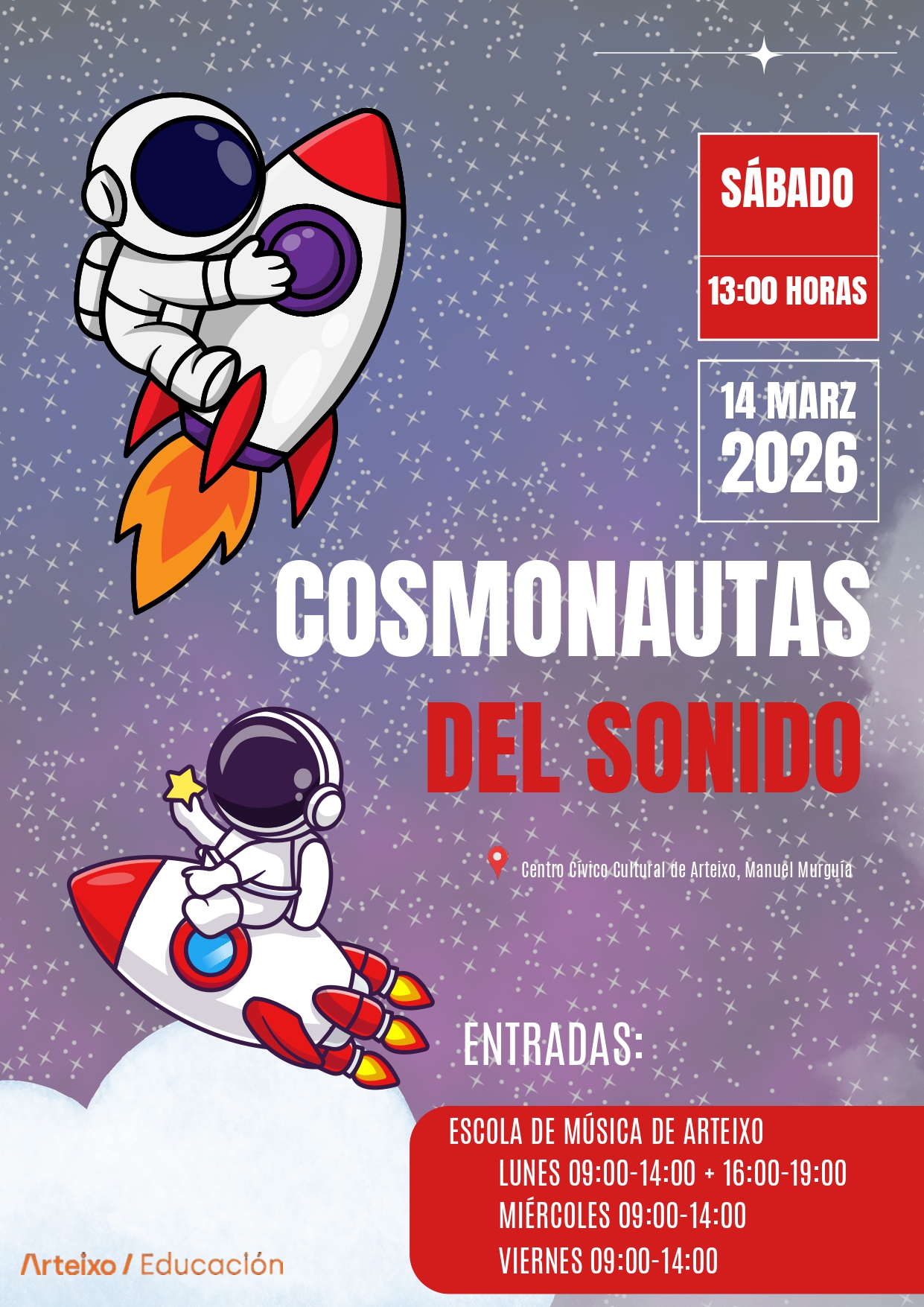 A Escola de Música de Arteixo subirá este sábado ao escenario do Centro Cívico Cultural Manuel Murguía co concerto didáctico 'Cosmonautas do Sonido', unha proposta dirixida a todos os públicos que combina música e divulgación para presentar dun xeito ameno as distintas familias instrumentais. A cita está fixada para as 13.00 horas e as entradas poden recollerse na propia Escola de Música.