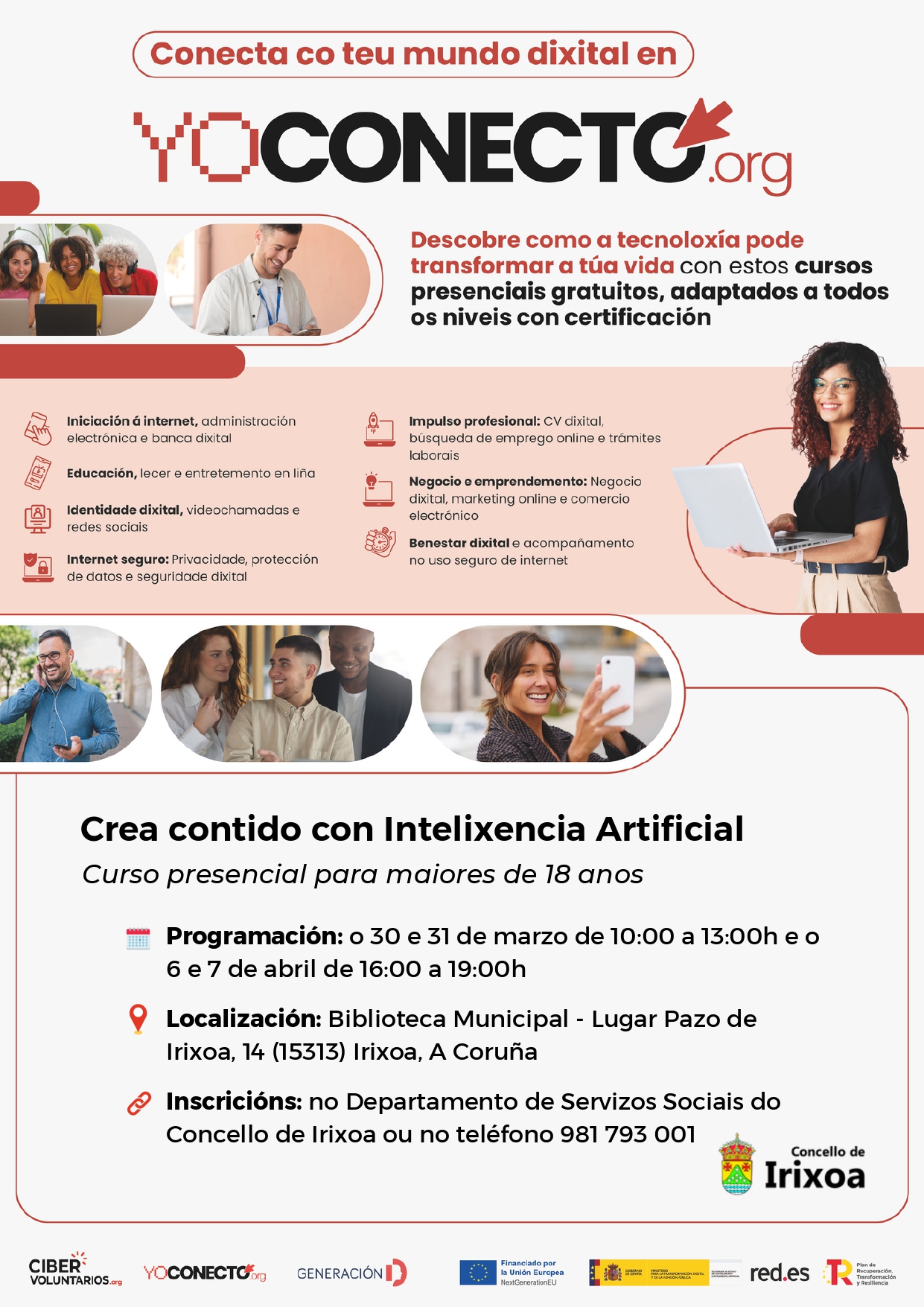 O curso enmárcase no programa 'YoConecto', unha iniciativa de capacitación dixital con cursos presenciais gratuítos adaptados a distintos niveis e con certificación ao remate. O proxecto busca mellorar as competencias tecnolóxicas da cidadanía e facilitar un uso máis útil, seguro e práctico das ferramentas dixitais na vida diaria.