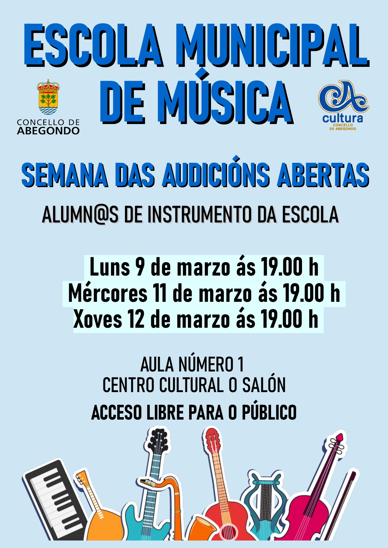 O acceso será libre ata completar a capacidade do espazo, polo que o Concello de Abegondo anima á cidadanía a asistir a estas sesións e apoiar ao alumnado nunha semana especialmente sinalada para a escola.