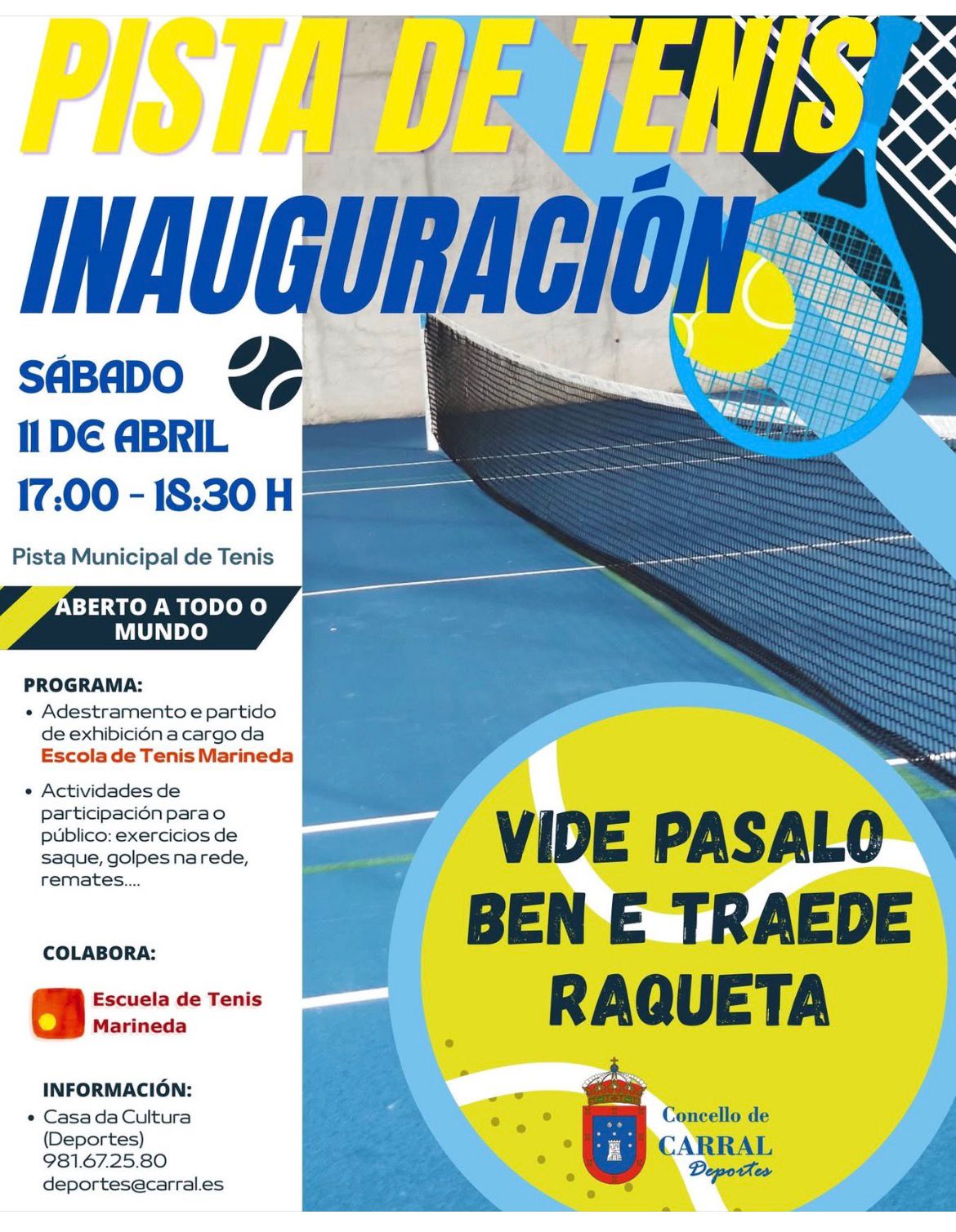 Carral inaugurará este sábado 11 de abril a súa nova pista municipal de tenis cunha xornada pensada para achegar este deporte á veciñanza dun xeito aberto e participativo. A actividade desenvolverase pola tarde e servirá non só para estrear oficialmente a instalación, senón tamén para convidar ao público a coñecer de preto o seu funcionamento.