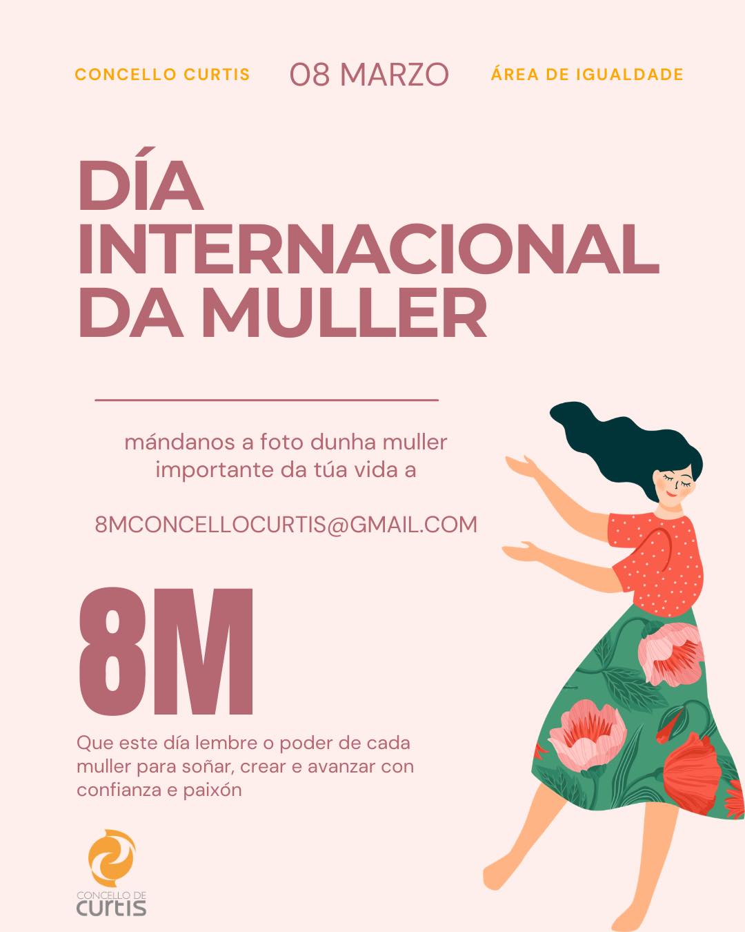 Para iso, o Concello solicita a colaboración da cidadanía: quen queira participar pode enviar por correo electrónico a foto dunha muller importante na súa vida. O prazo remata o mércores 4 de marzo, e as imaxes deberán remitirse ao enderezo 8mconcellocurtis@gmail.com.