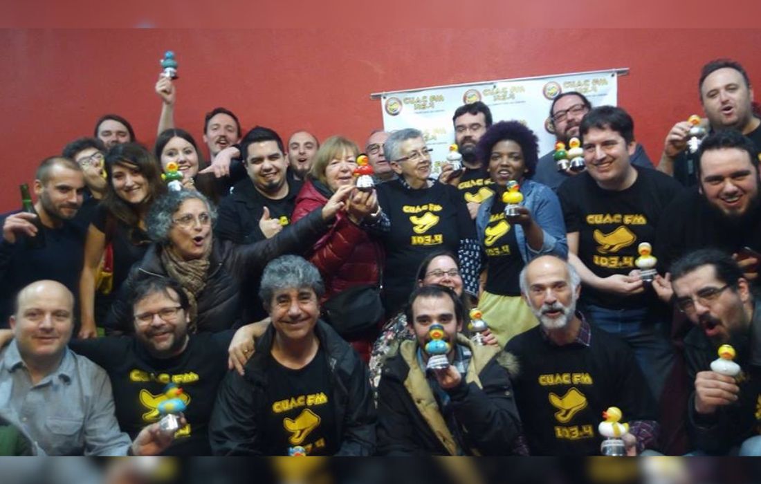 [M] CUAC é tremendamente diversa: formamos parte dela persoas de toda condición, pero ao mesmo tempo formamos unha gran familia. Non só as que están en activo en cada momento, senón as que fixeron programa no pasado, as contornas familiares de cadaquén e tamén a nosa audiencia. Isto demostrouse claramente en 2017, cando sufrimos o peche e o posterior proceso xudicial. O apoio foi abrumador e nunca estaremos abondo agradecidos por todo ese respaldo. Gústanos pensar que ese apoio se debe a que facemos as cousas tal e como debe facelas unha radio comunitaria: incluíndo as persoas, dándolles voz e estando ao seu carón. CUAC FM é unha radio da xente, e se a xente se apropia da radio e a considera como súa, deféndea. Para CUAC, iso signifícao todo.